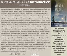 Cory and I would like to thank all of you for following along with our Weary World-Reflections for a Blue Christmas by Kathy Escobar Book Study this Advent Season. We are going to briefly summarize the key points for the rest of this week ending with our reflections on this Christmas Eve 2020.